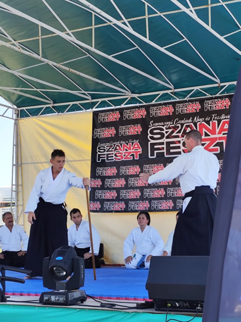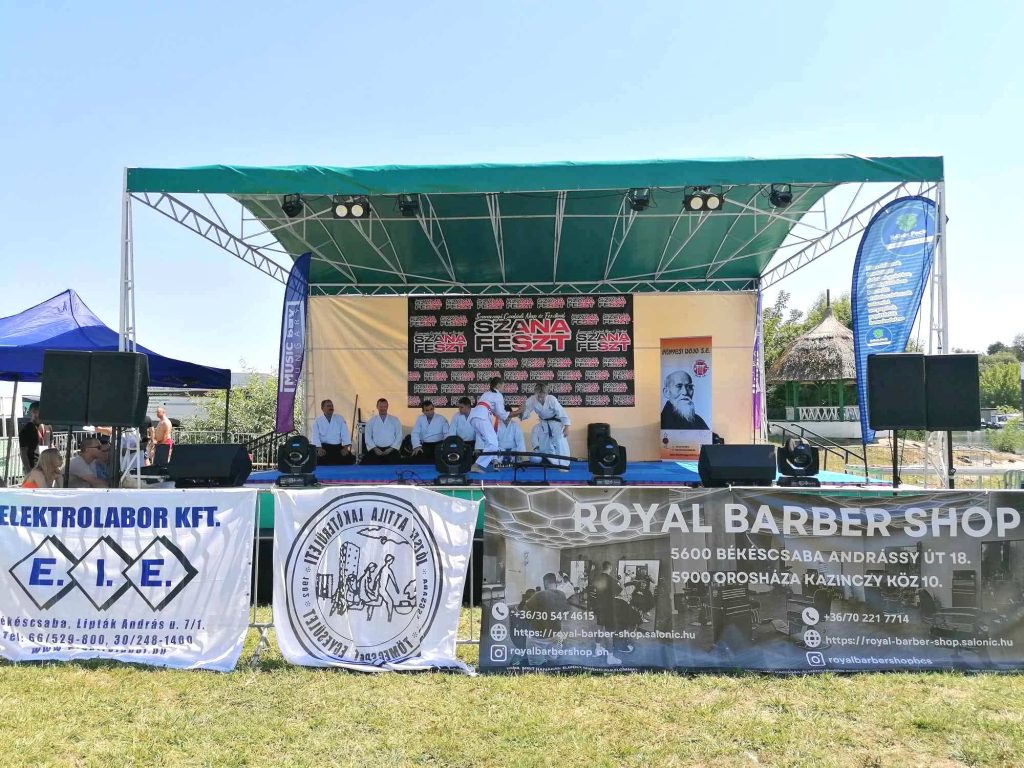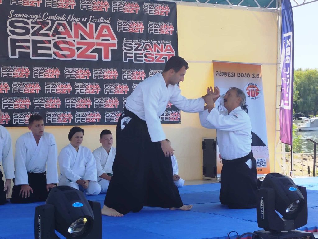 A rendezvény színpadán a Fényesi Dojo SE  a Békéscsabai JALTE Aikido Szakosztályával karöltve tartott színvonalas bemutatót 13:00 órától. A kánikula ellenére a közönség egy igazán jól felépített pörgős műsort láthatott. Először a gyerek csoport mutatott be eséstechnikákat és pusztakezes technikákat, majd a felnőttek következtek szabadkezes és fegyveres technikák bemutatásával. A színpadi bemutató mindig egy kicsit túlzó, látványos akciókkal, az éles helyzetektől finomabb mozdulatokkal. Célja a harcművészet megismertetése az érdeklődőkkel és nem mellesleg a vágy felkeltése az aikido gyakorlására, ami kitartó munkával talán alkalmassá teszi a gyakorlót, hogy konfliktushelyzetekben is helyt tudjon állni, legyen szó verbális vagy fizikális atrocitásról.
